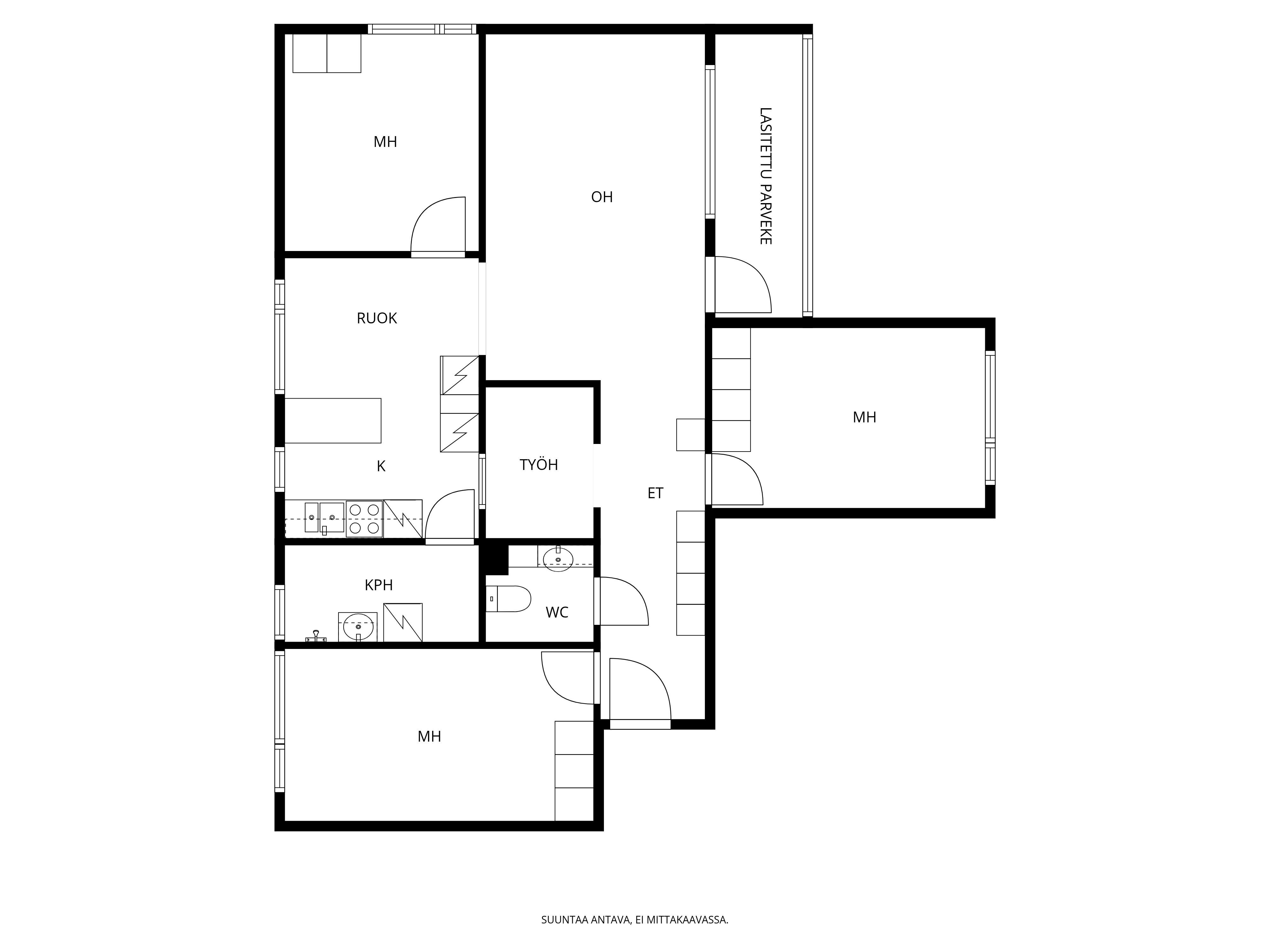 Asunto on hyvässä kunnossa ja se on remontoitu nykyaikaiseksi, erityisesti keittiö saarekkeineen, joka uusittiin vuonna 2018. Kolme makuuhuonetta tarjoavat runsaasti tilaa perheelle. Lisäksi eteisen yhteydessä on bonuksena pieni huone esimerkiksi työhuoneeksi tai vaatehuoneeksi. Olohuoneesta on käynti lasitetulle parvekkeelle, joka suuntautuu lounaaseen. Kylpyhuone ja wc sijaitsevat eri tiloissa, helpottaen perheen aamuruuhkaa.