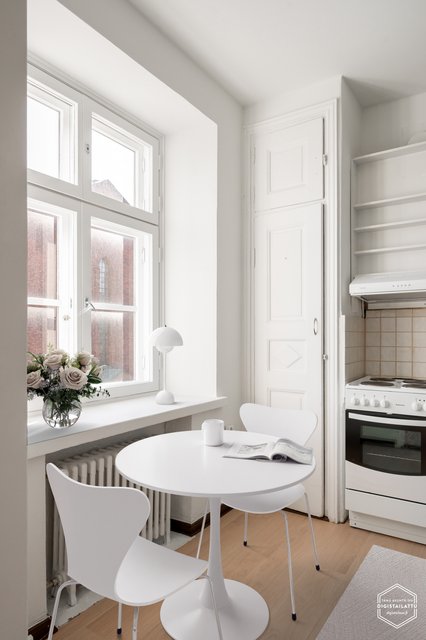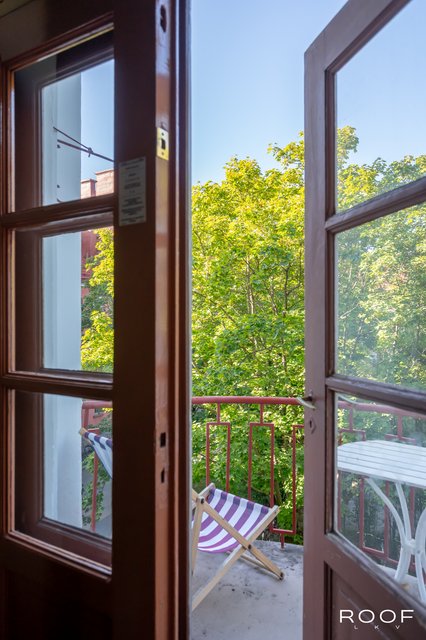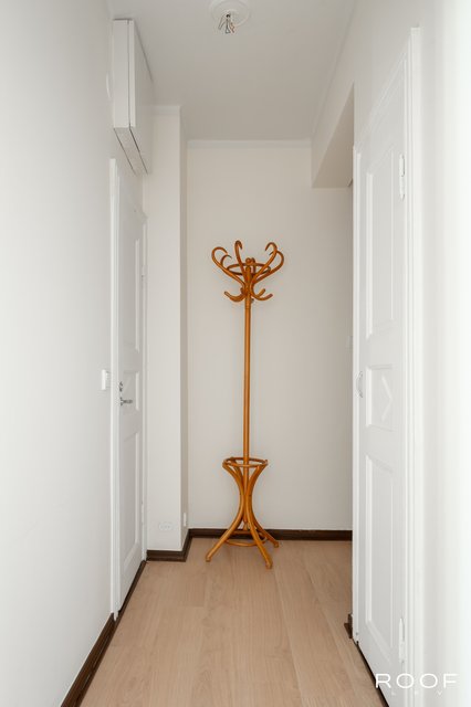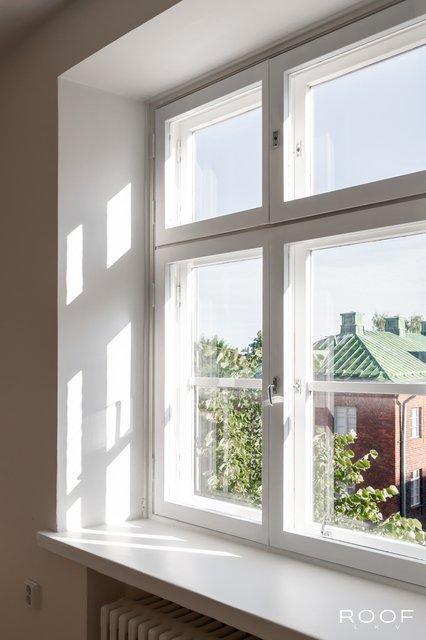 Asunnon uudet lattiat, listat ja juuri maalatut seinäpinnat luovat raikkaan pohjan kodille, mutta sen todellinen viehätys piilee alkuperäisissä yksityiskohdissa. Tilassa on kauniit peiliovet, koristeellinen ikkuna ulko-oven yläpuolella sekä vanhan ajan henkeä huokuvat ruutuikkunat leveine ikkunalautoineen. Nämä ovat yksityiskohtia, joita ei uudistuotannossa näe.