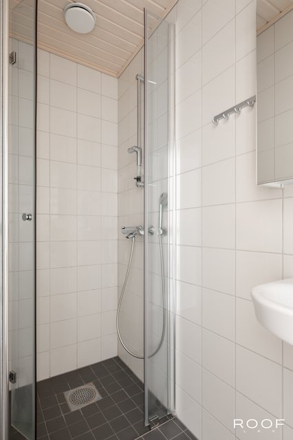 - SEINÄT: Laatta LATTIA: Laatta VARUSTELU: Suihku, suihkuseinä, Wc istuin, hana, allas, peilikaappi, lattialämmitys