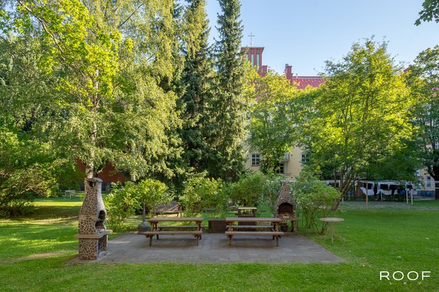 - Rakennustaiteellisesti arvokas vanha, kaunis rakennus. Korttelin kokoinen puistomainen sisäpiha. Yhteisöllisyys. Keskeinen sijainti ja hyvät liikenneyhteydet, mutta liikenteen äänet eivät kuulu.
