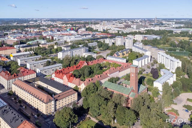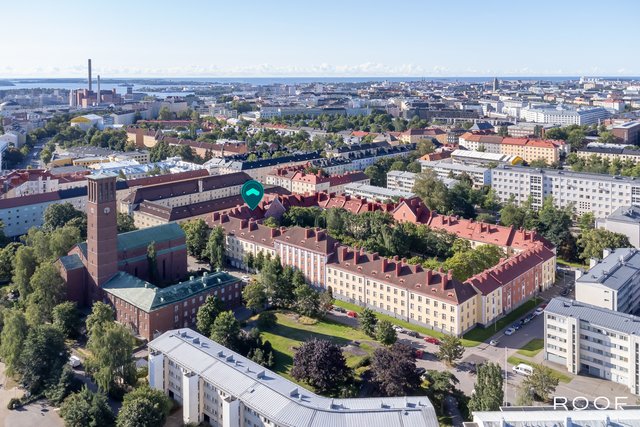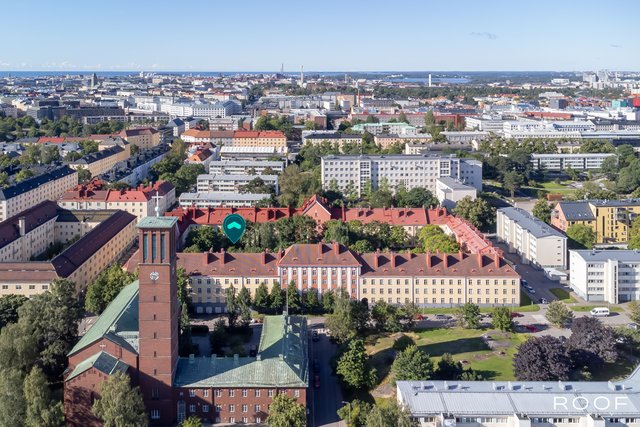 Sijainti on myös todella hyvä, läheltä Hämeentieltä kulkevat bussit sekä ratikoita, joten kulkuyhteydet eri puolille ovat sujuvat. Palvelut ovat vieressä, kaupat, kahvilat, ravintolat ja kulttuuri. Kävelymatkan päästä löytyy myös merenranta, luonnonsuojelualueet sekä monipuoliset lenkkipolut.