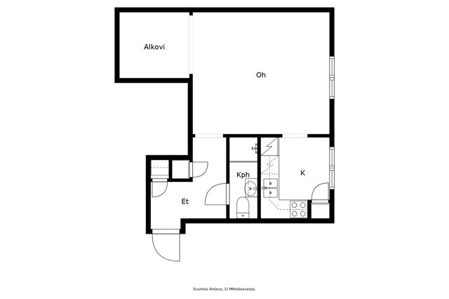 - Huoneiston pinta-ala on yhtiöjärjestyksen ja isännöitsijäntodistuksen ilmoituksen mukaan 37 m². Pinta-alaa ei ole tarkistusmitattu. Edellä mainittu pinta-ala saattaa tämän ikäisessä kohteessa poiketa olennaisestikin huoneiston nykyisen ja rakentamisaikaisen mittaustapojen ja standardien mukaan laskettavasta pinta-alasta. Huoneiston todellinen pinta-ala voi siis olla yhtiöjärjestyksessä, isännöitsijäntodistuksessa ja esitteessä mainittua pienempi tai suurempi.