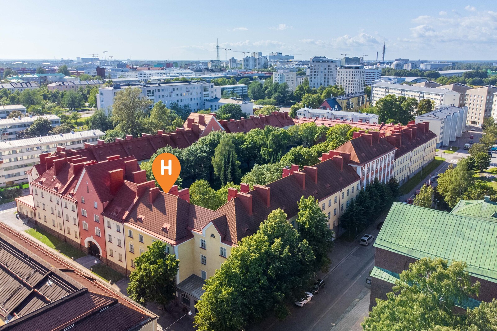 Tervetuloa tutustumaan tähän hurmaavaan kotiin, joka sijaitsee vuonna 1929 valmistuneessa talossa. Väljä kortteli kätkee sisälleen rauhallisen ja suojaisan, puistomaisen piha-alueen, jossa voi nauttia luonnon läheisyydestä keskellä kaupunkia.