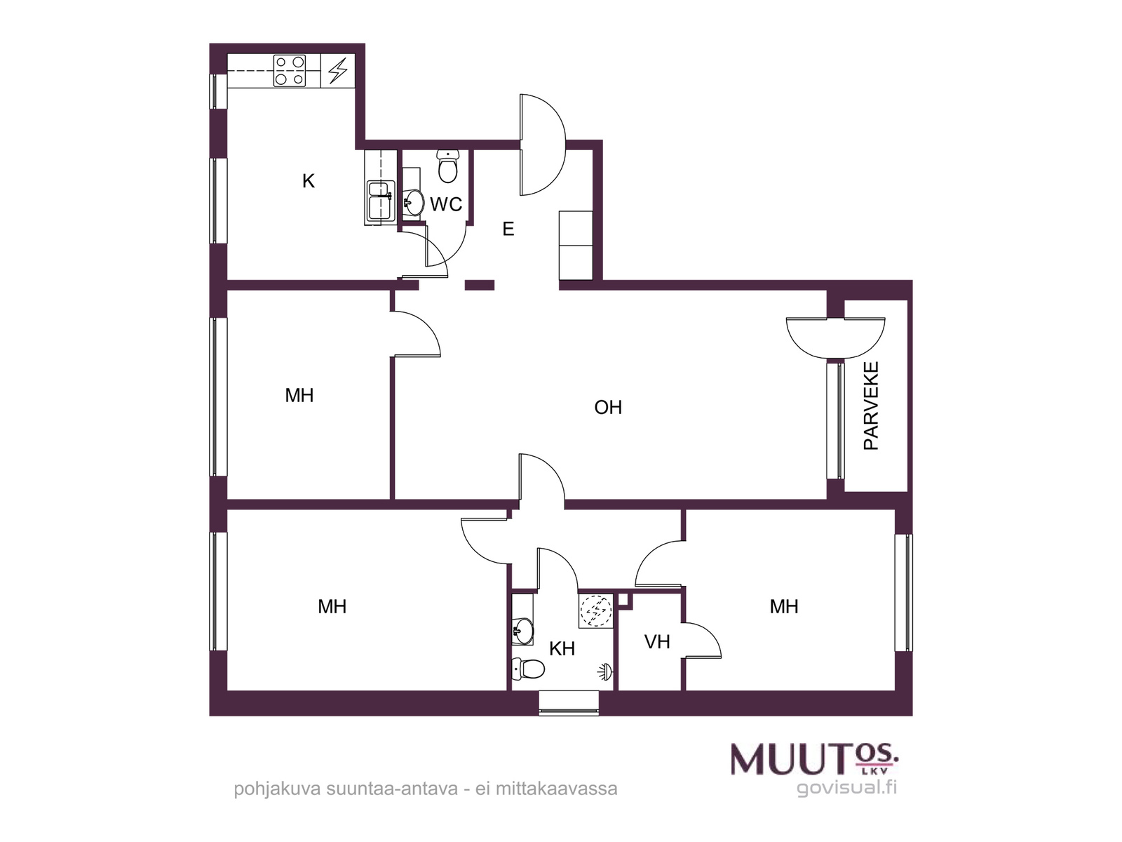 - Purettu betonille, uusi keittiö ostettu ja pakattuna asunnolla, voidaan myydä asuntokaupan yhteydessä erillisellä sopimuksella.