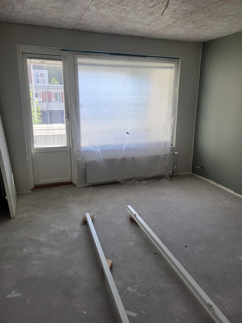 - Kaikki tilat (pl. kosteat tilat) purettu betonille, otsonoitu ja remonttia aloitettu.
