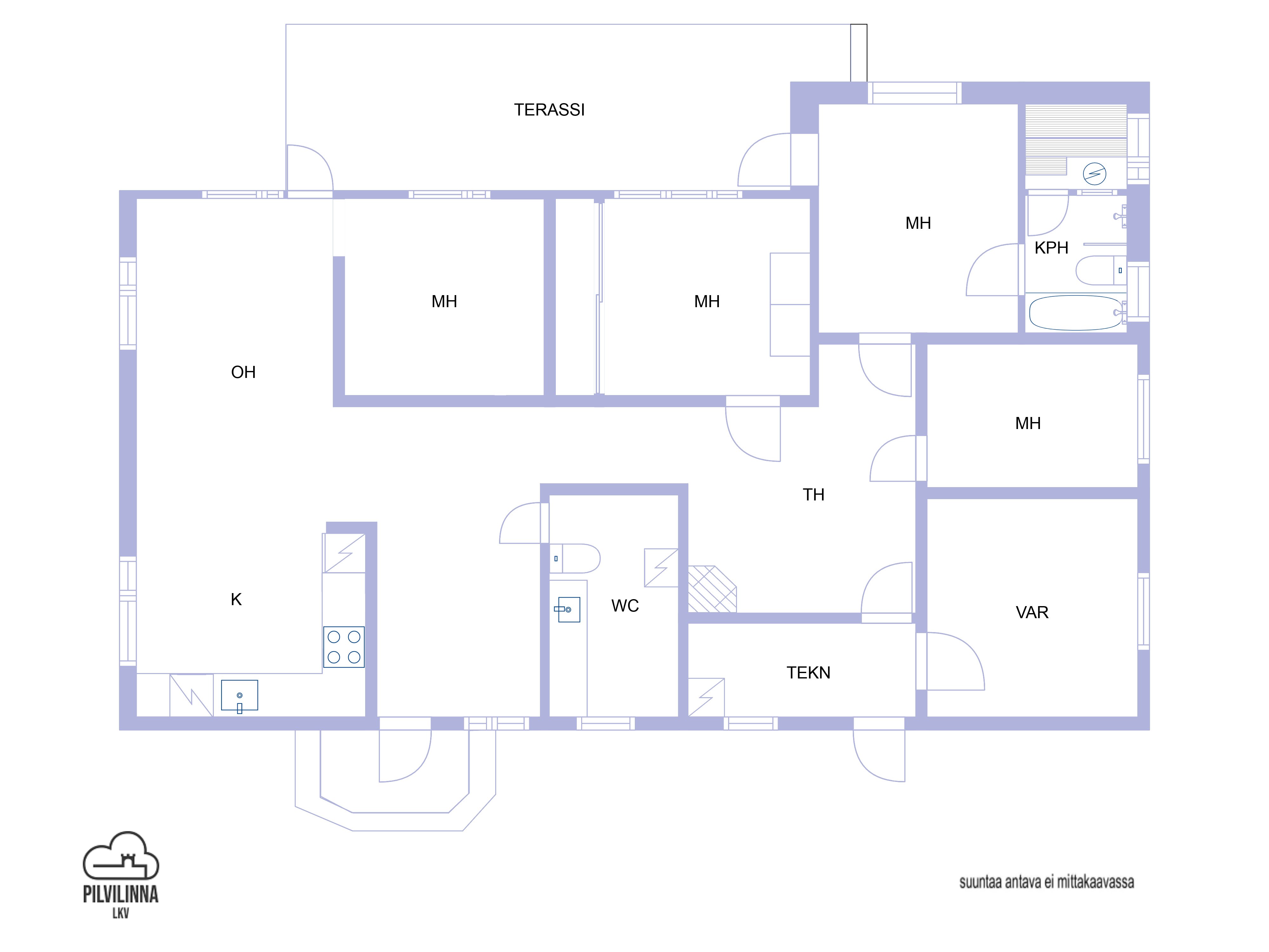 - Pinta-ala ei ole tarkistusmitattu ja todellinen pinta-ala voi olla suurempi tai pienempi, kuin ilmoitettu