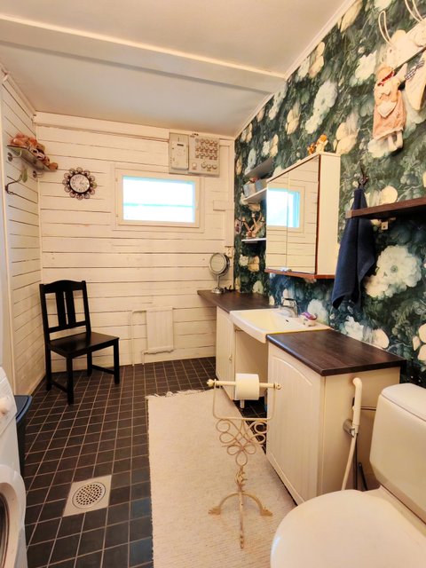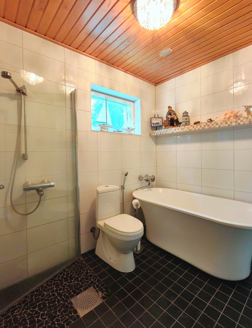 - WC-istuin, suihku, suihkuseinä, lattialämmitys, kylpyamme, ja pesuallasvaraus