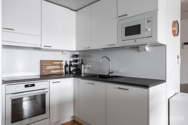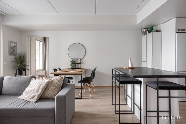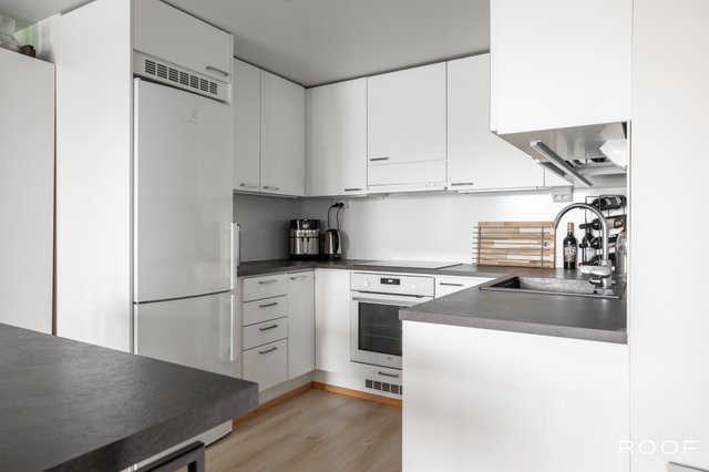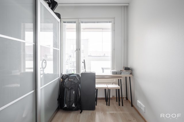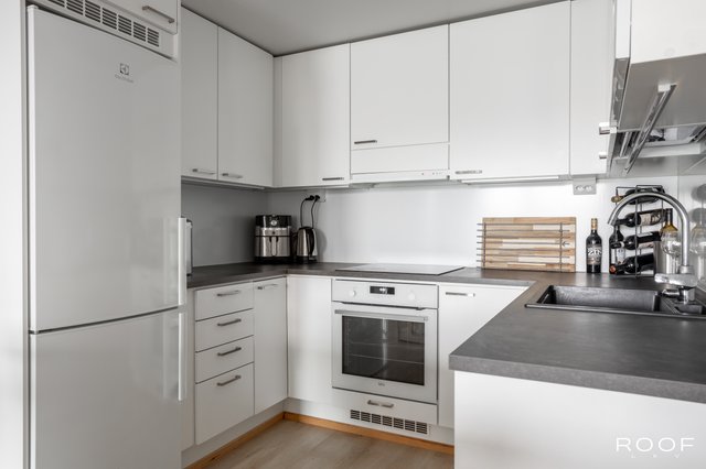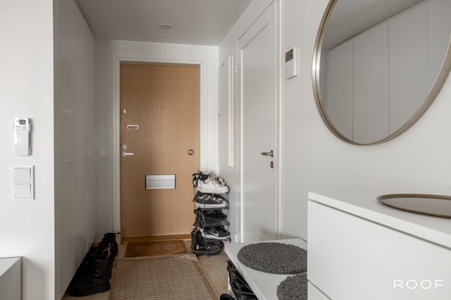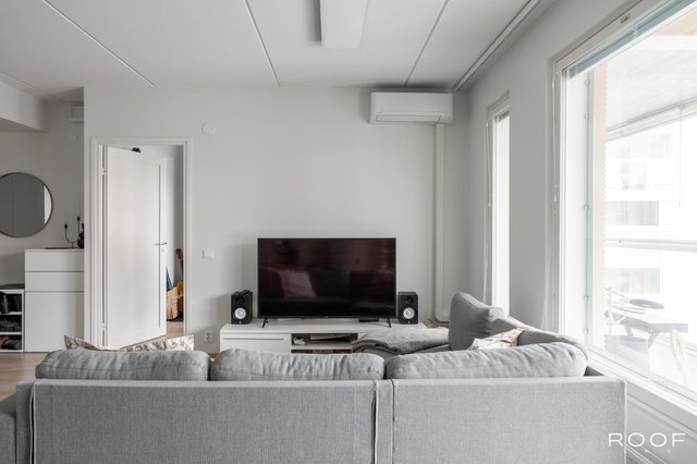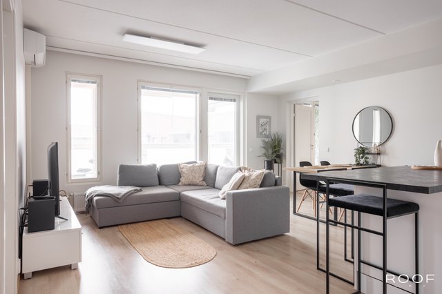 Asunnon keskipisteenä toimii avara ja valoisa olohuone, josta on käynti lasitetulle parvekkeelle, joka avautuu kaakkoon. Keittiö on varusteltu laadukkailla kodinkoneilla. Kaksi makuuhuonetta ja vaatehuone tuovat mukavuutta arkeen. Kylpyhuoneessa on lattialämmitys ja kaikki tarvittavat mukavuudet, kuten pesukone ja kuivausrumpu.