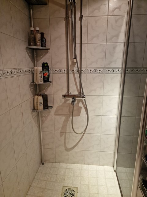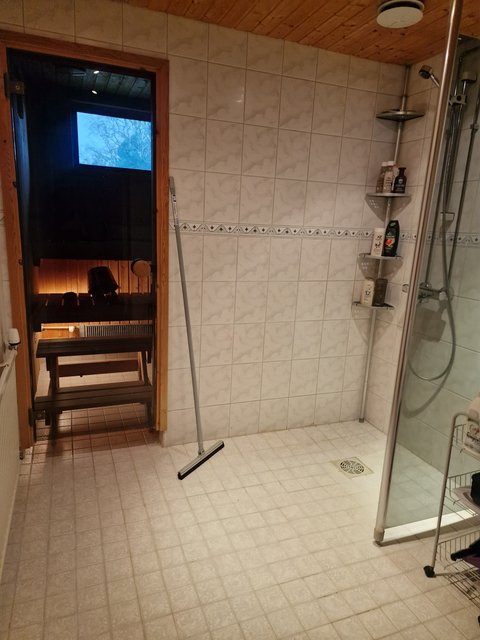 - Suihku, suihkuseinä, pesukoneliitäntä, ja lattialämmitys