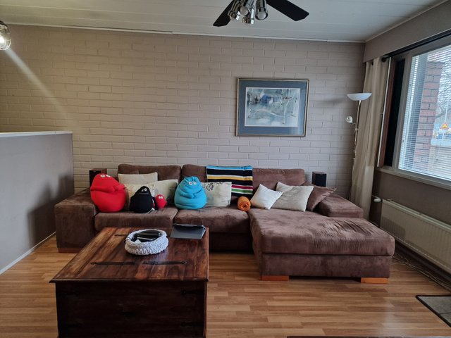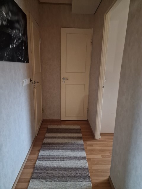Pinnat ovat siistissä kunnossa ja kodissa on kaksi makuuhuonetta, kaunis keittiö, joka aukeaa olohuoneeseen, kylpyhuone, sauna sekä erillisen wc. Pohjaratkaisunsa ansiosta tämä koti soveltuu hyvin lapsiperheelle, olohuoneesta on matalalla seinällä erotettu tila vaikka vanhempien sängylle tai työtilalle . Takapihalla on aurinkoinen terassi, jolla kelpaa nauttia lämpimistä kesäpäivistä ja raikkaista syysilloista. Autolle on autokatospaikka ihan asunnon edessä. Hyvät kulkuyhteydet ja päiväkoti tien toisella puolella.