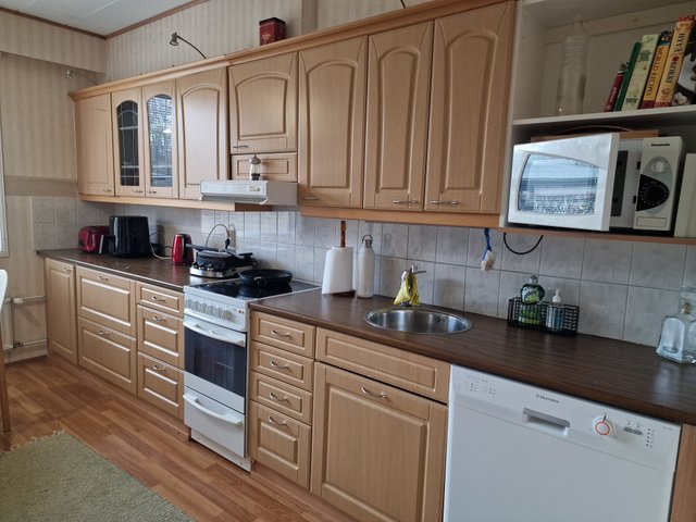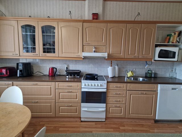 - Jääkaappi, liesituuletin, astianpesukone, liesi, uuni, ja erillinen pakastin