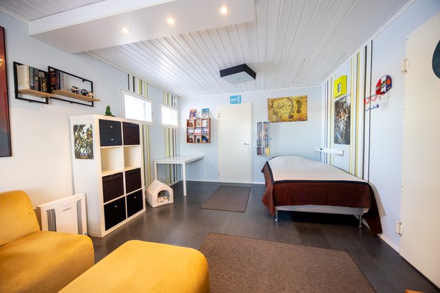 2013 muutettu talon päädyssä oleva autotalli huoneeksi
