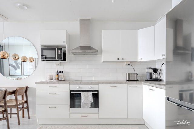 - Todella siistikuntoinen valkoinen Puustellin keittiö jossa kaikki tarvittavat kodinkoneet.