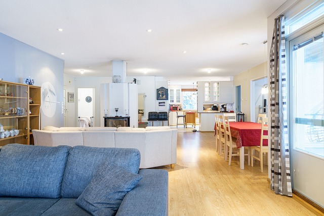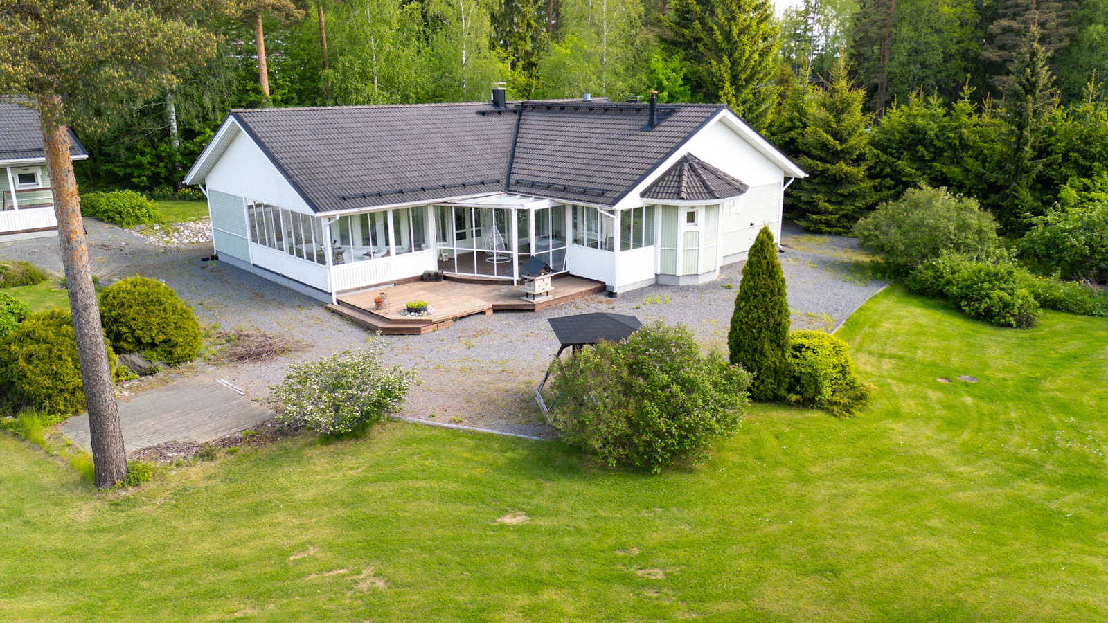 Tilava ja valoisa koti tarjoaa reilusti huoneita sekä suuren avoimen tilan perheen yhteisiin hetkiin. Tilassa on upea kaareva ikkunaseinä joka tuo reilusti luonnonvaloa. Ikkunaseinältä avautuu etelän suuntaan suuri lasitettu terassi joka säilyy käytettävänä ympäri vuoden. Asunnossa on kaksi takkaa, joten pääset nauttimaan miellyttävästä takan lämmöstä pakkaspäivinä tuplasti. Laadukas paikallinen Jokkis-keittiö inspiroi kokkaamaan, ja saunaosastolle sopii saunojia reilusti. Mikäli kaipaat vaihtelua tarjoaa puulämmitteinen pihasauna rentouttavat saunahetket myös omassa pihassa. Reilun kokoisessa kodinhoitohuoneessa hoidat kodin askareet. Energiatehokas ja ympäristöystävällinen maalämpö pitää kodin lämpimänä.