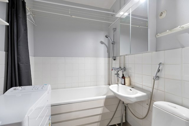 - WC-istuin, suihku, kylpyamme, peilikaappi, pesuallas, ja bidee-suihku