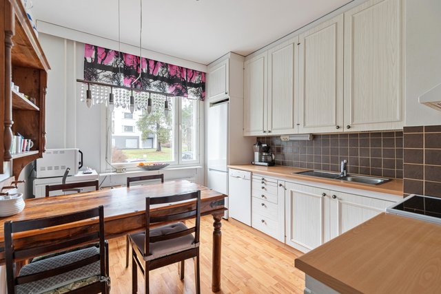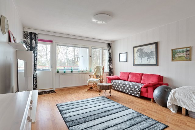 Asunnossa on tilava olohuone, josta on käynti parvekkeelle, sekä hyvin varusteltu keittiö, jossa on mm. induktioliesi ja astianpesukone. Makuuhuoneen ja olohuoneen lattiat ovat kaunista laminaattia, mikä tuo lämpöä ja kodikkuutta tiloihin.