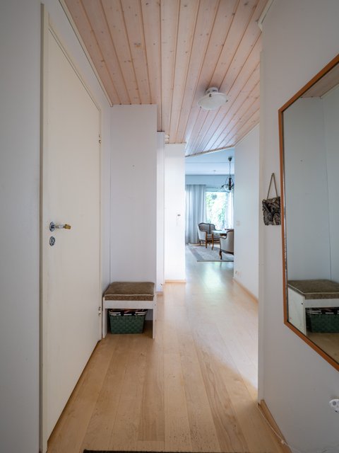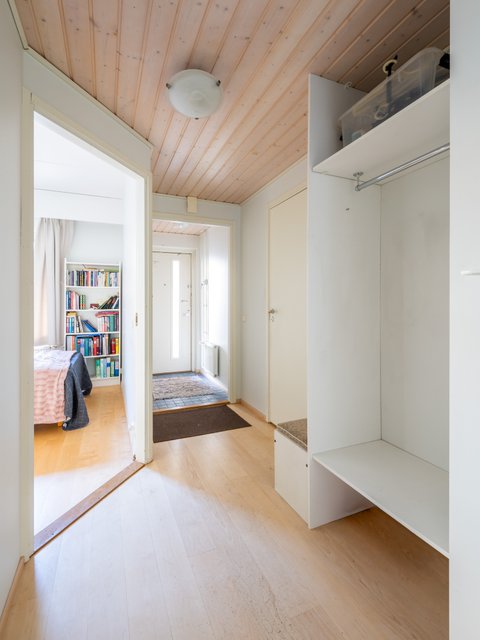 - Eteiskäytävässä parketti, seinät maalattu. Kaapisto ulkovaatteille. Tuulikaapissa patteri, lattia laatoitettu, seinät maalattu.