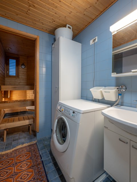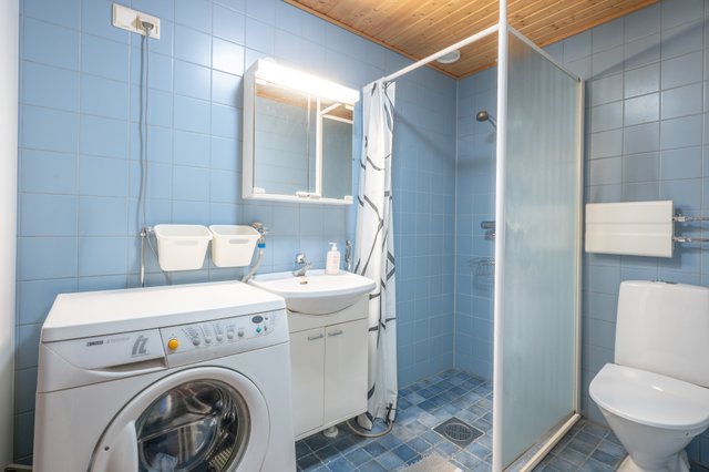 - WC-istuin, suihku, peilikaappi, pesuallas, allaskaappi, ja bidee-suihku