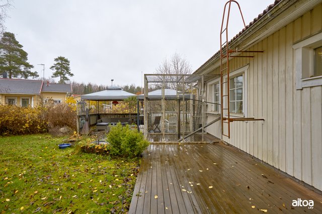 1997 valmistunut omakotitalo tarjoaa erinomaiset puitteet mukavaan arkeen. Talo sijaitsee rauhallisella ja tasaisella tontilla, jossa on tilaa lasten leikeille.