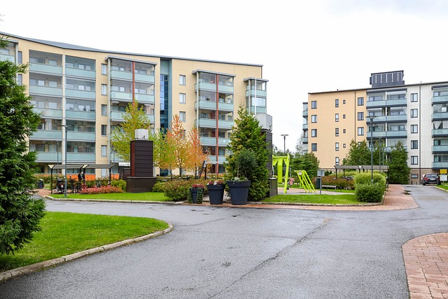 - Yhtiön pihaan ja naapuritalon kattojen yli.
