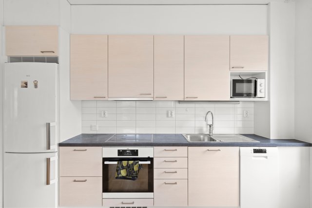 - Jääkaappipakastin, liesi, uuni, ja astianpesukone