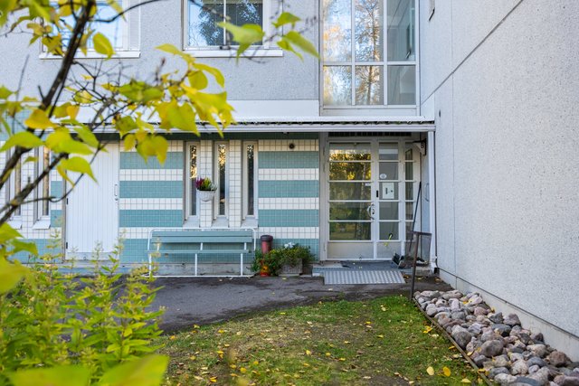 Pohjakerroksen asunto (74m2) esteettömällä kululla. Kulmahuoneisto ja oma terassi tekevät asumisesta rivitalomaista. Vaalean sävyiset keittiö ja kylpyhuone ovat tilavia. Omassa saunassa kelpaa ottaa löylyt ja terassille vilvoittelemaan!