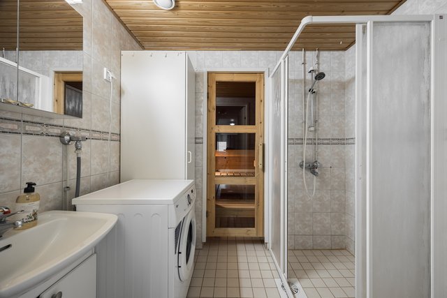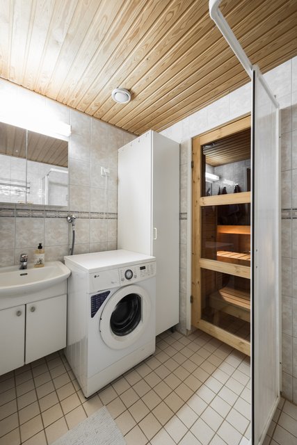 - Vaalealla laatalla ja kaakelilla varusteltu tilava kylpyhuone, sekä oma sauna.