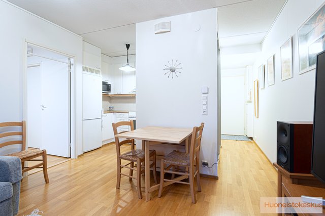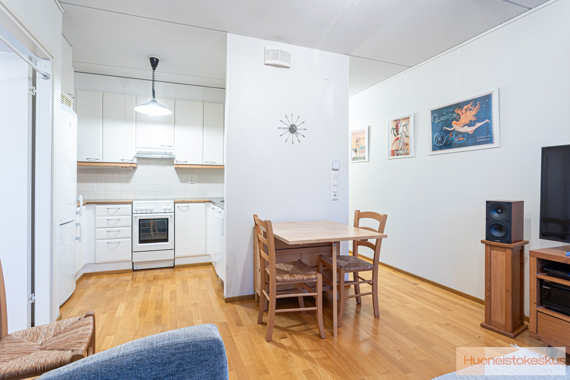 Keittiössä on kaikki tarpeellinen arjen ruoanlaittoon. Makuuhuone on rauhallinen ja tarjoaa riittävästi säilytystilaa. Kylpyhuoneessa on lattialämmitys ja tilaa pyykinpesukoneelle, mikä lisää asumismukavuutta.