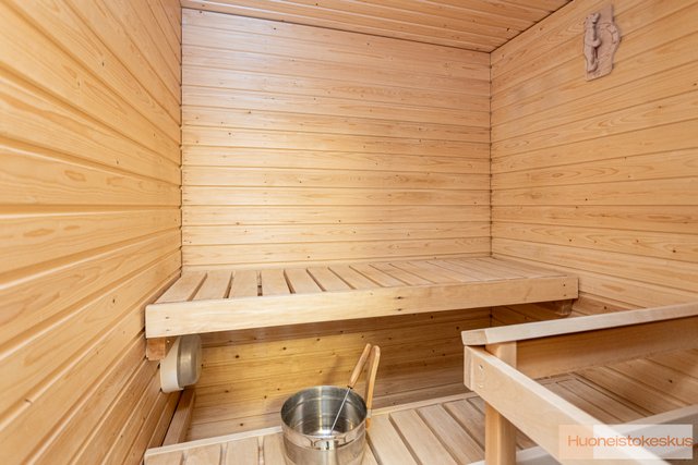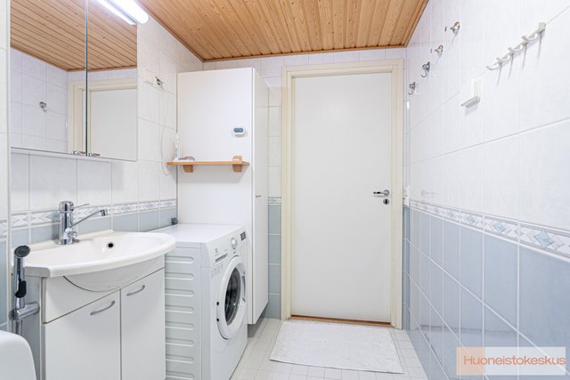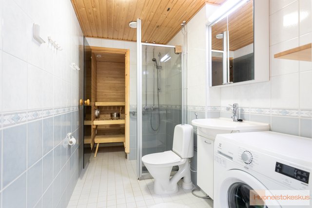 - WC-istuin, suihku, suihkuseinä, pesukoneliitäntä, lattialämmitys, peilikaappi, pesuallas, ja bidee-suihku