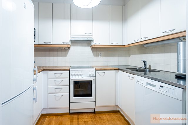- Jääkaappipakastin, liesi, liesituuletin, ja astianpesukone