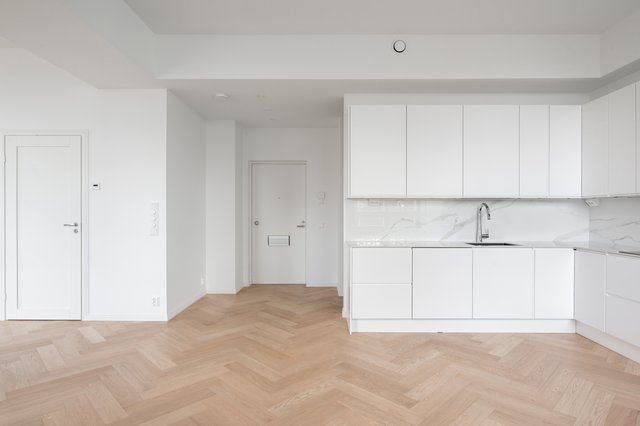 Mahtava olohuone-avokeittiötila kolmella suurella ikkunalla ja avoimilla, merellisillä näkymillä. Riittävän suuri, minimalistinen ja kaunis keittiö. Makuuhuoneeseen mahtuu suuri liukuovikaapisto ja kaksi isoa ikkunaa. Kylpyhuoneen vaikuttavan harmoniset laatat tuovat jopa ripauksen spa-fiilistä.