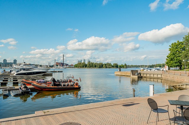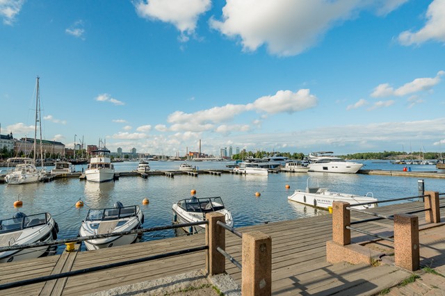 Klassinen satamanäkymä, kalanruotoparketti, ajattomat ja laadukkaat materiaalit ja hyvin suunnitellut yksityiskohdat; todellinen tilaisuus oikeasti tasokkaaseen asumiseen, kohtuullisella hinnalla.