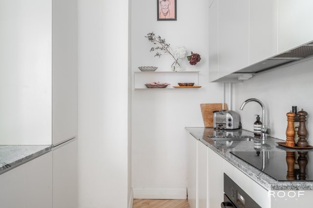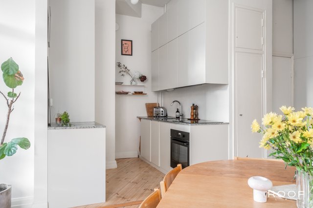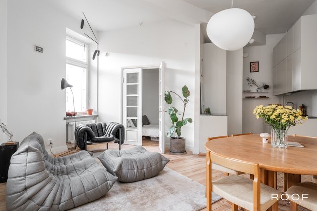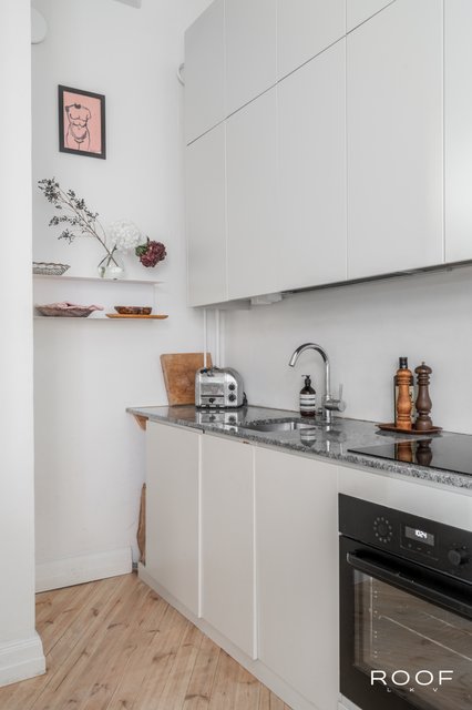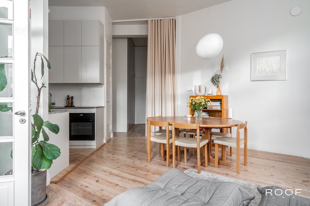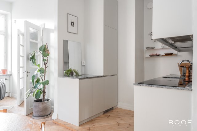 Tässä viidennen kerroksen kauniissa asunnossa yhdistyvät tyylikkyys ja käytännöllisyys. Vuonna 2019 toteutettu remontti järkevöitti pohjaratkaisua: keittiö ja oleskelutila avartuvat yhtenäiseksi tilaksi, seinäpinnat ja kattopinnat saivat uutta ilmettä, ja kauniit lautalattiat hiottiin ja sävytettiin. Keittiö ja kaapistot uusittiin laadukkailla materiaaleilla, ja viimeistelynä asennettiin uudet jalkalistat ja ovilistat. Asunto kylpee valossa koko päivän ja näkymät avautuvat rauhalliselle sisäpihalle. Tämä on koti, jossa niin mieli kuin viherkasvit viihtyvät! Hoitovastike on vain 225 €/kk, ja paksut seinät takaavat äänettömän asumisrauhan.