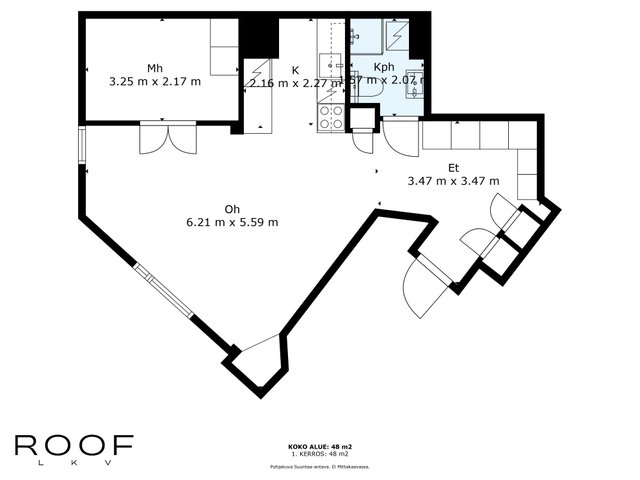- Yhtiöjärjestyksen mukainen, Isännöitsijäntodistuksen mukainen, (Pinta-ala ei ole tarkistusmitattu ja todellinen pinta-ala voi olla suurempi tai pienempi, kuin ilmoitettu)