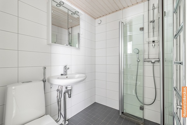 - WC-istuin, pesukoneliitäntä, suihkuseinä, peilikaappi, suihku, ja asennettuja erikoisvarusteita, kiinteät valaisimet