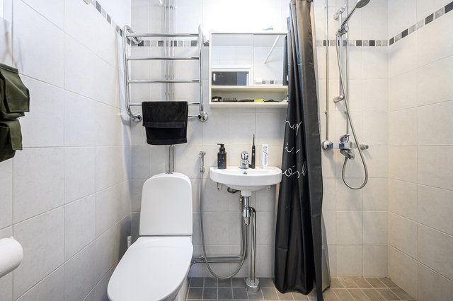 - WC-istuin, suihku, ja pesukoneliitäntä