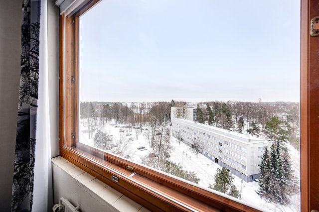 - Avarat näkymät parvekkeelta länteen ja makuuhuoneesta etelään 8/10 kerros.