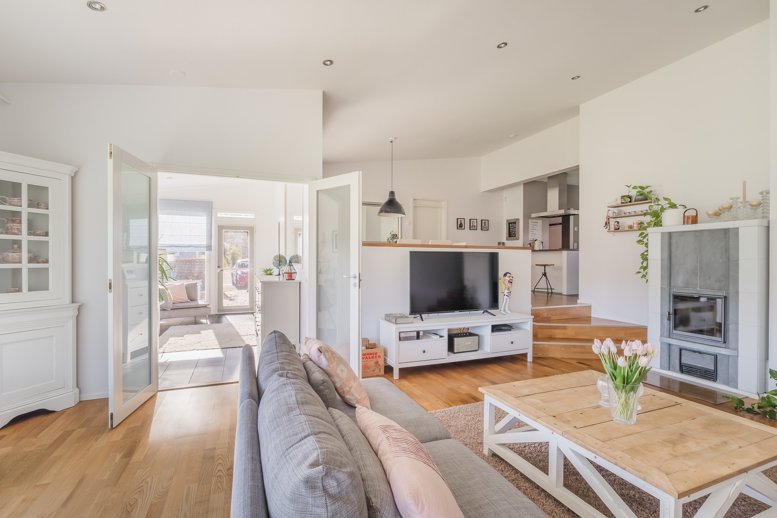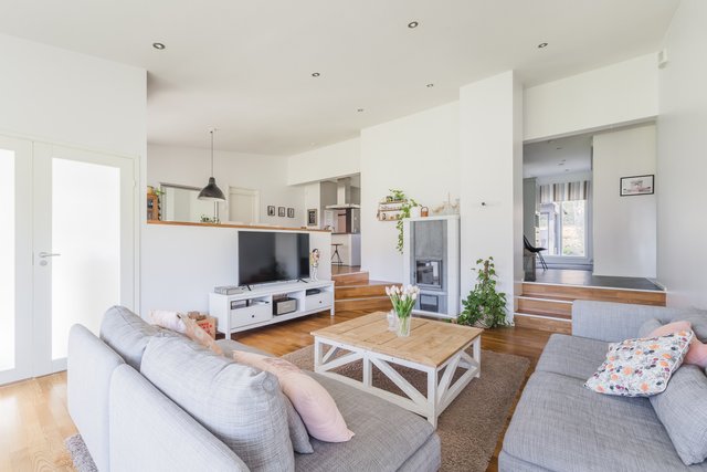 Tilavat ja valoisat huoneet tekevät kodista toimivan ja viihtyisän. Olohuoneessa varaava takka luo lämpöä ja tunnelmaa, ja keittiö on käytännöllinen sekä hyvin varusteltu. Kolme makuuhuonetta tarjoavat sopivasti tilaa perheelle, ja erillisestä lukutilasta  saa helposti tehtyä neljännen makuuhuoneen tarvittaessa. Ihana viherhuone olohuoneen yhteydessä.