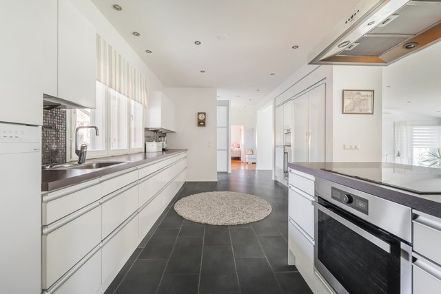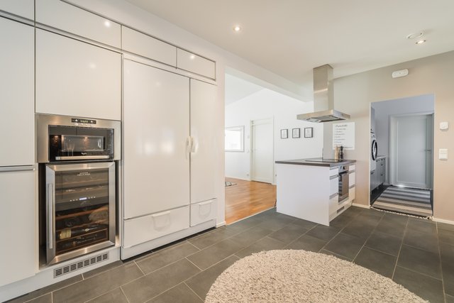 - Jääkaappi ( ja pakastekaappi (Festivo kylmiö)), liesi, erillisuuni, astianpesukone, mikroaaltouuni, liesituuletin, keittiösaareke, ja viinikaappi