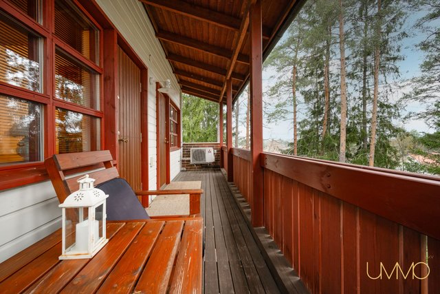 Etelään avautuva terassi tarjoaa ihanteellisen paikan nauttia luonnon rauhasta ja omasta pihapiiristä. Asunnon pohjoissivulla sijaitseva, koko asunnon levyinen parveke antaa lisää tilaa oleskeluun ja rentoutumiseen.