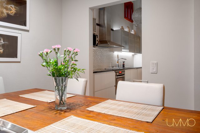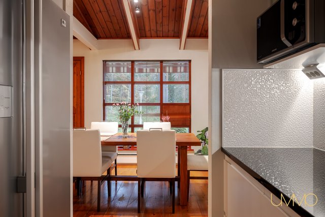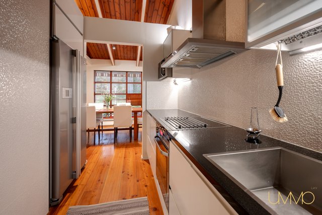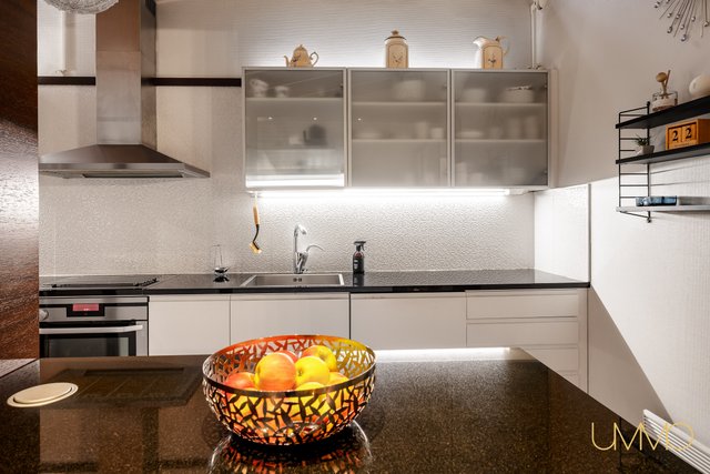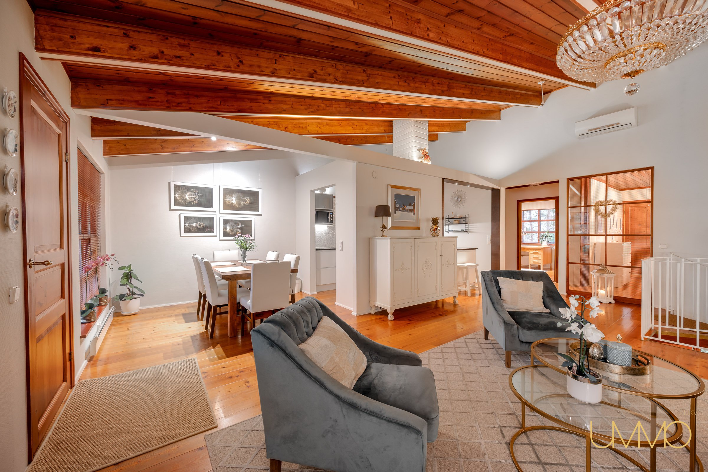 Keittiö on remontoitu laadukkailla materiaaleilla ja nykyaikaisilla ratkaisuilla, jotka tukevat kodin ajattoman tyylikästä ilmettä. Ruokailutila ja olohuone muodostavat yhtenäisen, viihtyisän kokonaisuuden. Lämmitysmukavuutta lisäävät kosteiden tilojen lattialämmitys sekä kaksi ilmalämpöpumppua, jotka on asennettu ylä- ja alakertaan. Kodissa on lisäksi sähkönkulutusta optimoiva ohjausjärjestelmä, joka ajoittaa kulutusta edullisimmille tunneille.