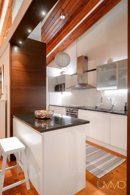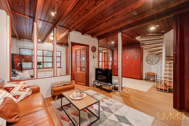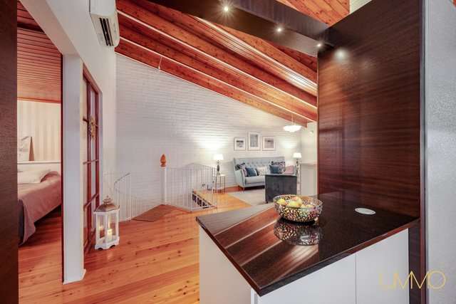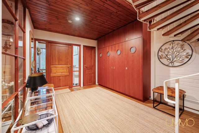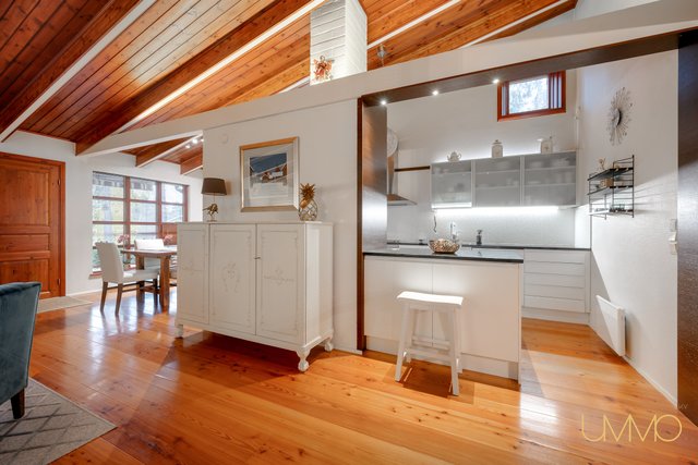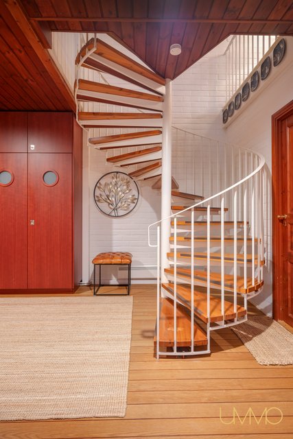Kodin tilaratkaisut on suunniteltu harkitusti ja yksilöllisesti. Asunnossa on kolme makuuhuonetta, tilava olohuone, alakerrassa sijaitseva takkahuone, ruokailutila, kaksi WC:tä, vaatehuone sekä laadukkaat, remontoidut sauna- ja kylpytilat. Olohuoneen korkea vinokatto ja suuret ikkunat tuovat runsaasti valoa ja avaruutta, ja näyttävät lankkulattiat sekä lämpimät puupinnat luovat harmonisen kokonaisuuden. Arkkitehtoninen suunnittelu tekee tästä kodista aidosti ainutlaatuisen.