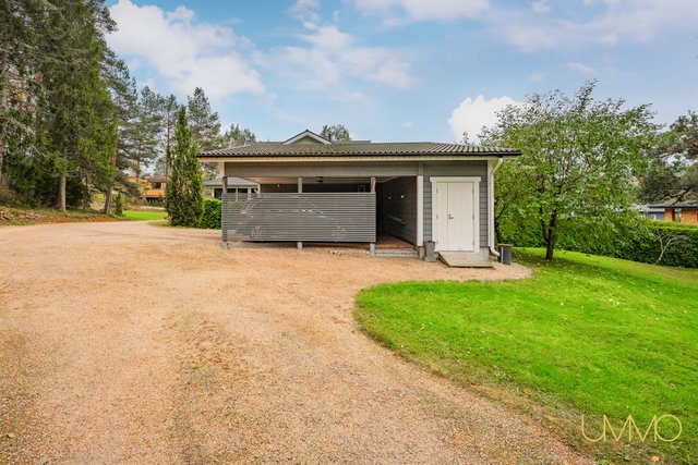 Huoneistoon kuuluu kylmä autotalli ja varasto. Lisäksi on mahdollisuus ostaa erillisillä osakkeilla lämmin autotalli, jossa on 11 kW latausasema, sekä lämmin varasto. Halutessaan ostaja voi hankkia myös viereisen tontin, jossa on tällä hetkellä kahden auton autokatos ja varasto – erinomainen lisä esimerkiksi harrastajalle tai perheelle, joka tarvitsee enemmän säilytystilaa.