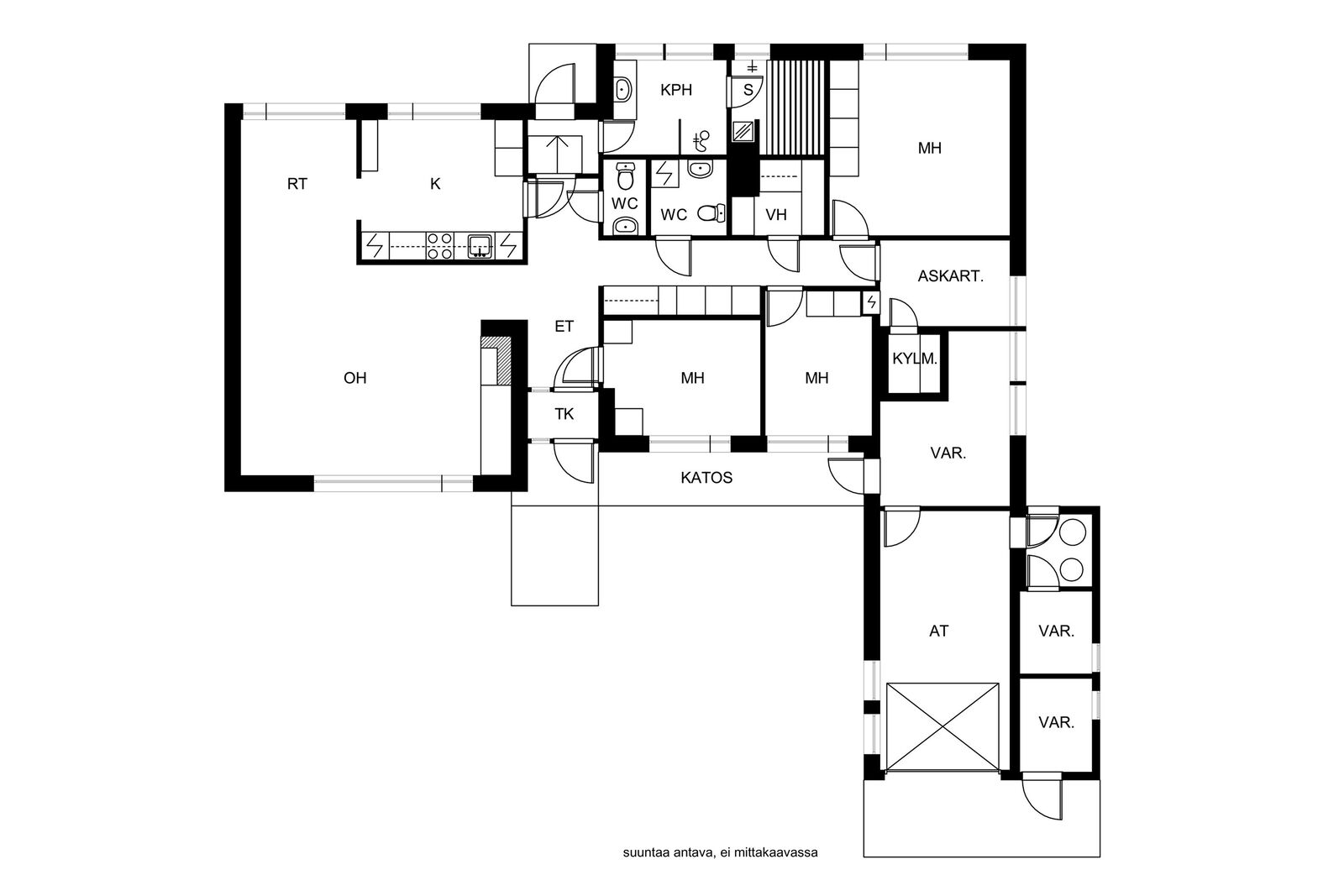 - Varastohuone. Tekninen tila (autotallin takaosassa) jossa lämmönvaihdin ja vesipiste.