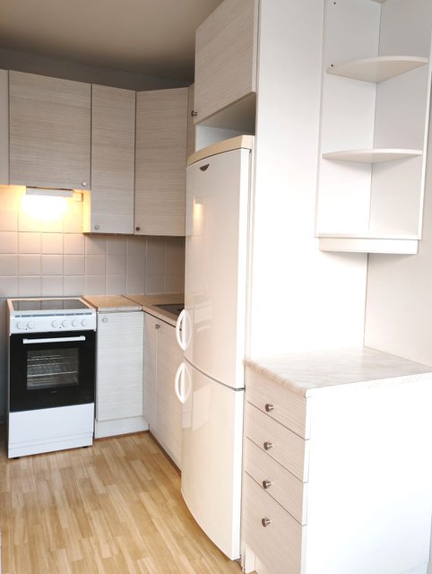 Keittiö on varustettu nykyaikaisilla laitteilla, kuten jääkaappipakastimella ja keraamisella liedellä, ja kylpyhuoneessa on tilaa pesukoneelle. Asunnossa on myös käytännöllinen vaatehuone, joka tarjoaa reilusti säilytystilaa.