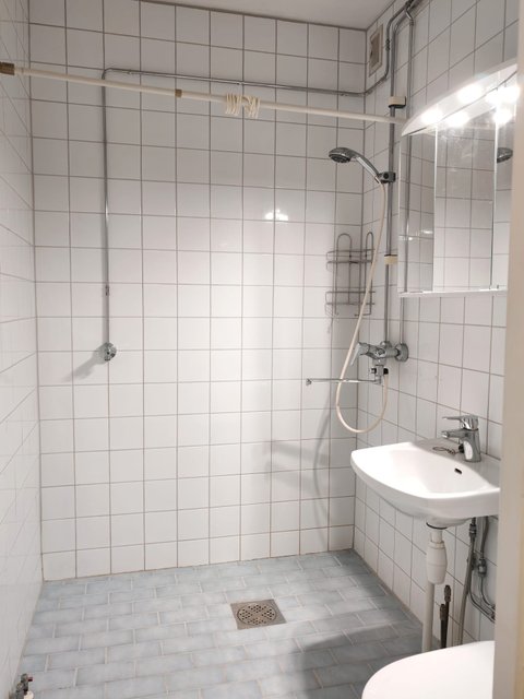 - WC-istuin, suihku, pesukoneliitäntä, peilikaappi, ja bidee-suihku