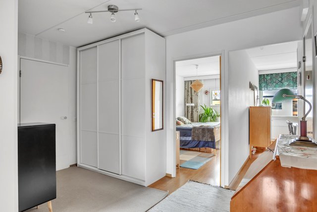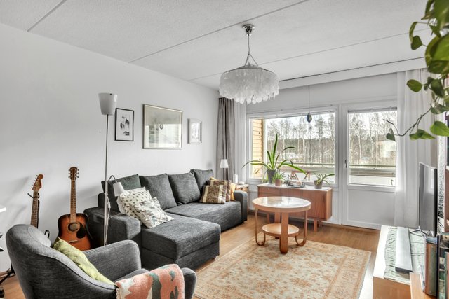 Hyväkuntoinen ylimmän kerroksen kolmio vuonna 1978 valmistuneessa kerrostalossa. Asunnossa on kaksi tilavaa makuuhuonetta, valoisa olohuone, kylpyhuone ja upea, v. 2017 remontoitu keittiö, josta löytyy niin integroidut kodinkoneet kuin tilaa ruokailuryhmälle. Säilytystilaa löytyy kookkaasta vaatehuoneesta. Olohuoneesta pääsee avaralle lasitetulle parvekkeelle, josta avautuvat vehreät näkymät Savelan puistoon ja aina Vantaanjoelle saakka.