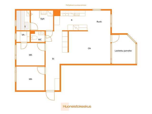 3 h, k, kph/s, vh, lasitettu parveke (Yj. 3h+k+s)