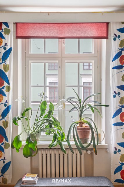 - Läpitalon huoneisto. Keittiöstä ja makuuhuoneesta vehreät näkymät sisäpihan suuntaan, toisesta makuuhuoneesta ja olohuoneesta rauhallisen Savilankadun puolelle.