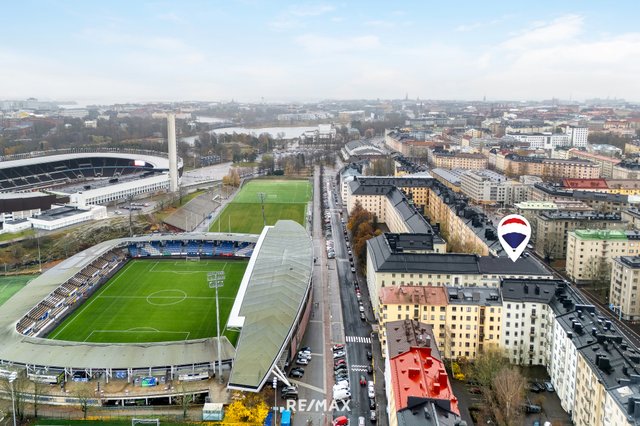 Asunnon sijainti Töölössä on ihanteellinen: erinomaiset liikenneyhteydet, kuten raitiovaunu- ja bussipysäkit ovat liki vieressä. Lähellä sijaitsevat myös kattavat arjen palvelut sekä koulut ja päiväkodit. Vehreät puistot ja kauniit ulkoilureitit sekä kattava kulttuuritarjonta.